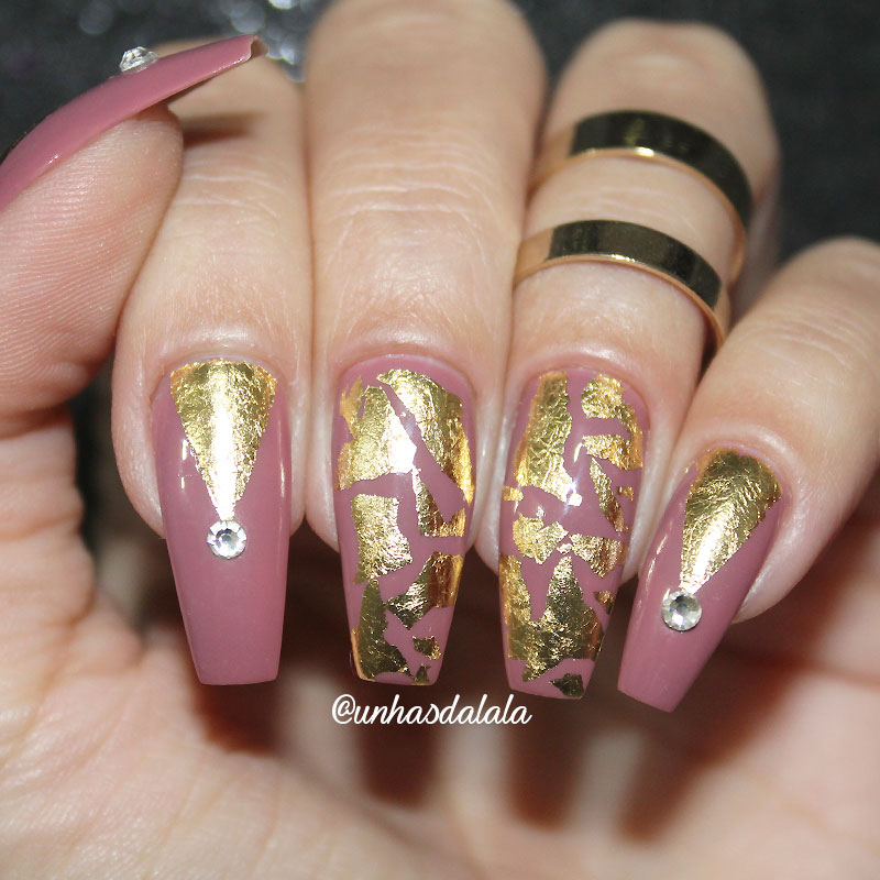 Unhas decoradas com folha de ouro ficam simplesmente chiques e são bem fáceis de fazer, basta ter a folha de ouro. ?