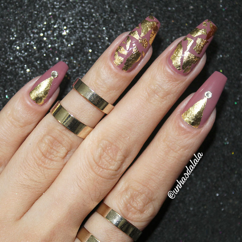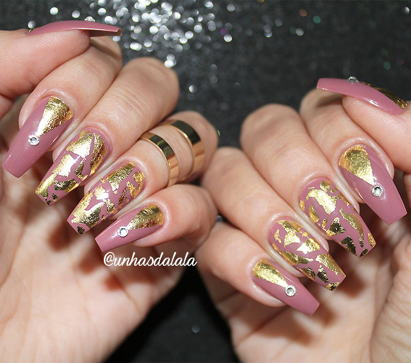 Vejam nessas duas últimas fotos a folha de ouro aplicada nas unhas no detalhe. ?